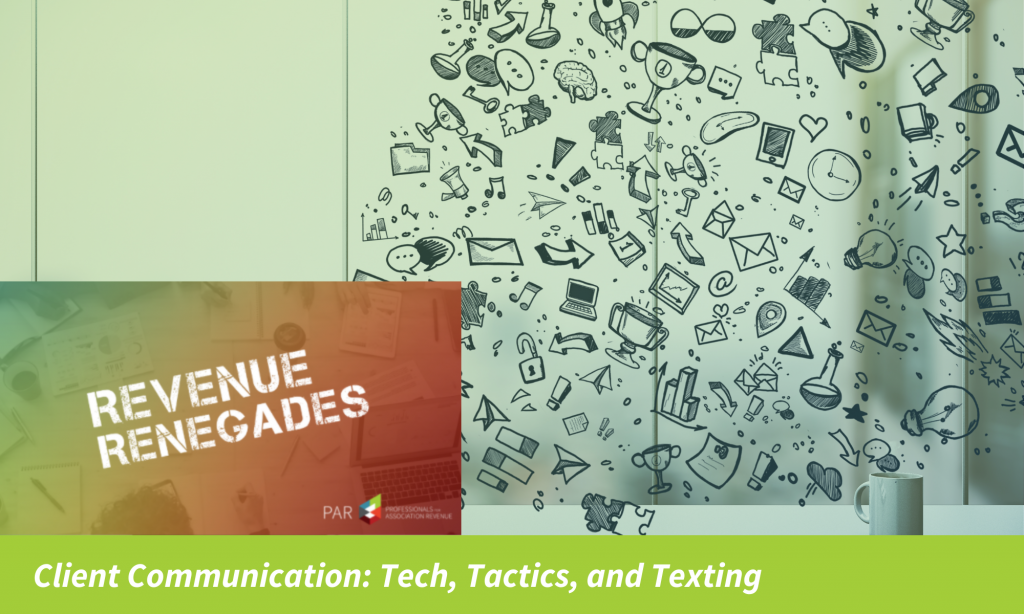 This past Wednesday, revenue producers from the association industry came together to chat about client communication. Participants shared ideas, thoughts and perspectives on all things tech, communication tactics, and even texting as a business development professional. As part of PAR’s April Value Proposition Month, the Revenue Renegades were able to tie in the importance of communicating the association’s value with each outreach, no matter the method or platform.